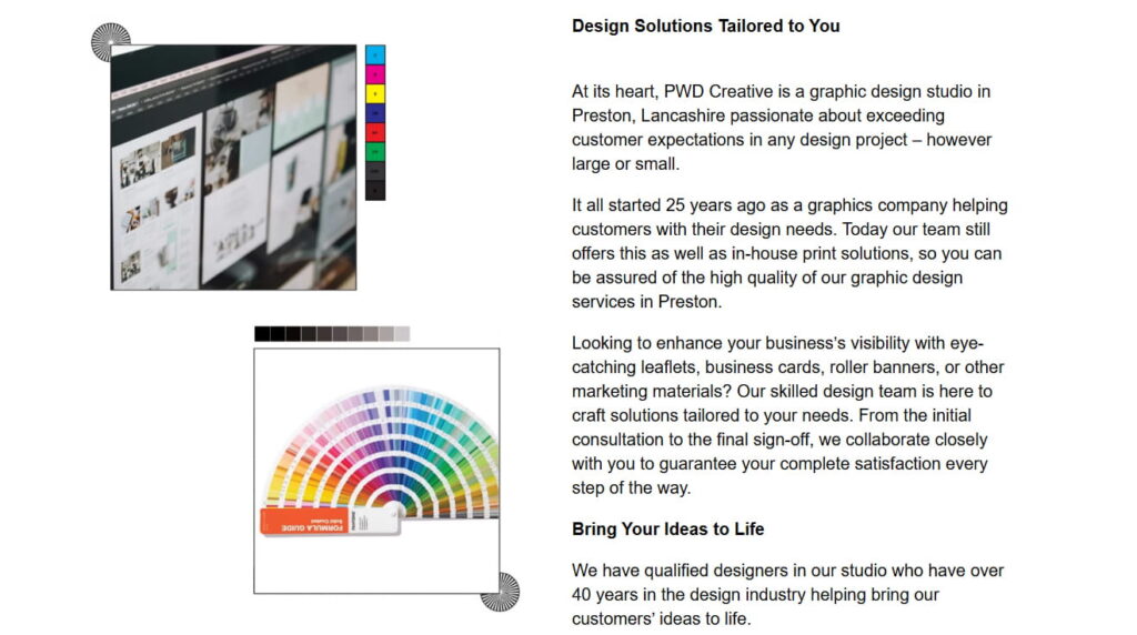 PWD Creative Solutions Ltd is a design and printing company based in Preston, Lancashire offering graphic design, logo creation, printing of leaflets, business cards, brochures, banners and social media marketing services